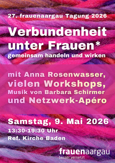 Ziel der Tagung ist, dass wir Frauen* in Verbindung gehen und Zuversicht und Freude an der solidarischen und feministischen Gemeinschaft spüren. Durch die gemeinsamen Erfahrungen können nachhaltige Beziehungen entstehen und das solidarische Netzwerk von Frauen* für Frauen* wird gestärkt. Wir verstehen unter feministischer Solidarität, dass wir uns immer wieder gegenseitig unterstützen und die Hoffnung auf eine Welt pflegen, in der ein gutes Leben für alle möglich ist. Indem wir Frauen* uns aufeinander beziehen, bewirken wir sowohl kleine wie auch grosse Veränderungen. Die Tagung wird diesmal Teil des Programms der Badener Disput(N)ation sein und im reformierten Kirchgemeindehaus in Baden durchgeführt.